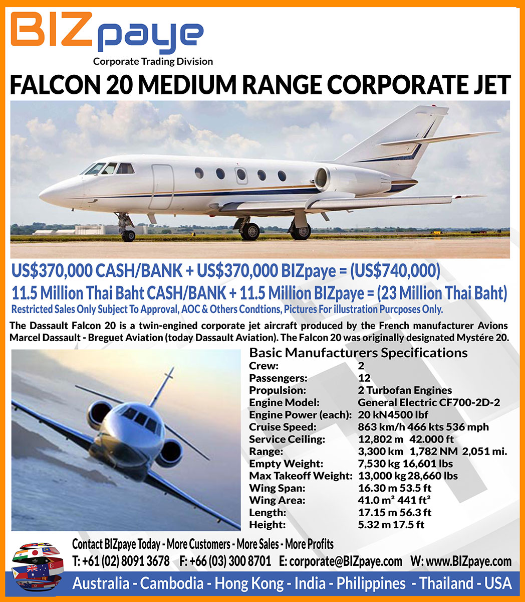 เครื่องบิน FALCON 20 ขนาดกลางองค์กรเจ็ท